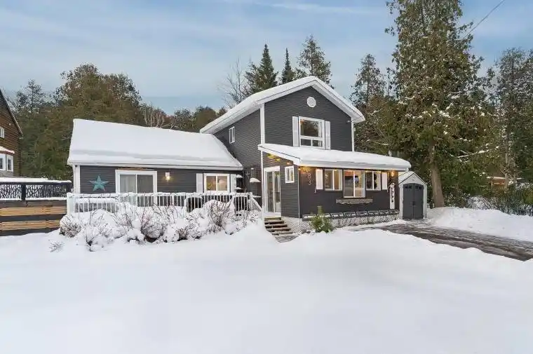 Top 5 Reasons You Will Love This Home: 1) This incredibly versatile, turn-key property offers endless possibilities with a spacious two-storey layout paired with a self-contained bungalow suite, ideal for multi-generational living, a peaceful cottage retreat, an at-home business, or an income-generating opportunity, including the option for an owner to live in the bungalow suite while renting or Airbnb the main two-storey home to help offset expenses or generate additional income 2) A bright back family room with soaring ceilings that flood the space with natural light and over $135K of upgrades in last 3 years, this home boasts a refreshed kitchen, bathrooms, bungalow suite, an enclosed sunroom addition, 3 fireplaces, and updated landscaping 3) The beautifully renovated bungalow suite provides a private bedroom or office, a self-contained kitchen with a stove, and a 3-piece bathroom, making it the perfect space for guests, extended family, rental income, or even a dedicated home office 4) Enjoy outdoor living all year-round with a serene backyard oasis, front and rear decks, mature evergreens, and views of the Georgian Bay sunsets without the higher waterfront taxes, all steps away from marinas, trails, and endless four-season activities such as skiing, snowmobile trails, and ice fishing 5) Ideally located just 2 minutes from Highway 400 and 30 minutes north of Barrie, this home comes with added comforts like an EV charger, a big and bright spray-foam insulated 4’8″ high and 407 square foot crawl space, and efficient ductless heating and cooling systems, bonus, 3 mins away a new paramedic/ambulance station is underway, offering peace-of-mind through faster emergency care, and 2 ski hills within 13-minutes away, and the snowmobiling and fishing out your front door. 2,069 fin.sq.ft. All furnishings (negotiable).