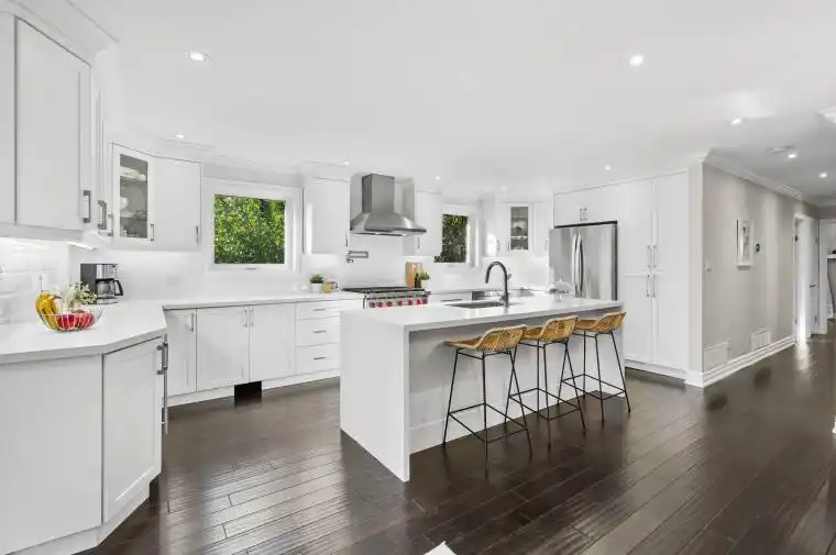 This one checks every box. Hello bungalow, hello LOT SIZE, and hello to making excellent life choices. This fully renovated, full-sized 3+1 bedroom, 2 full bath home with a finished basement with separate entrance , Muskoka Room, and oversized lot is officially ready to reward your good judgment. Tucked back on a quiet street, it flexes a sunken front porch and a double car garage like it knows exactly what it’s doing. Step inside to a proper foyer with double closets and smart storage (because chaos is so last year). Hand-scraped flooring runs wall-to-wall across the main level, setting the tone for a kitchen that does not mess around, acres of counter space, custom details, and a Wolf stove that deserves its own applause (howl optional). The open living and dining area is built for connection, hosting, and finally having space for everyone. Flat ceilings, pot lights, crown moulding, just the right amount of polish, because choosing well should feel good. Down the hall, generous storage leads to the bedrooms. The principal suite is a standout, with peaceful yard views and a spa-like ensuite featuring double sinks and double closets. The additional bedrooms deliver too – raised windows, great proportions, and clean finishes throughout. The family bath? Heated floors, a deep soaker tub, and a layout that keeps everyone happy. Downstairs, a separate entrance (you noticed) leads to a finished basement made for movie nights, game days, or whatever you’re bingeing next. Gas fireplace, stone accents, TV setup, and space to play. Outside, the oversized, private yard feels like an escape, especially with your own three-season Muskoka Room. One warning: once people see it, they’ll never want to leave. Start the year strong. Book your showing.