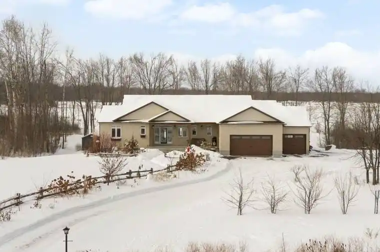 Welcome to 26 Synergy Way, an exceptional custom-built residence located in prestigious March Crest Estates. Nestled on over 2 private, treed acres in rural Kanata and backing onto open farmland, this property offers peaceful surroundings, and sweeping views of the Gatineau Hills. Built in 2018 by Grizzly Homes, this meticulously crafted home blends refined design, thoughtful functionality, and outstanding craftsmanship throughout. The main level features a bright, open-concept layout ideal for both everyday living and entertaining. A chef-inspired kitchen showcases quartz counters & backsplash, extra-tall stacked cabinetry, built-in microwave, pot filler, stainless steel appliances, and an impressive 10′ x 5′ island with extensive storage and seating. The dining area & vaulted great room offers designer lighting, pot lights, and a striking 12′ real stone gas fireplace with reclaimed barn beam mantle. Sliding doors lead to a two-storey TREX composite deck with glass railings, perfect for enjoying panoramic views. Three bedrooms on the main level, including a stunning primary suite with vaulted ceilings, walk-in closet, and award-winning 5-piece ensuite with heated floors. A spacious mudroom/laundry area with built-ins offers convenient access to the heated triple-car garage. Wide-plank brushed white oak hardwood flooring throughout main level. The walk-out lower level includes a fully self-contained 1,600 sq.ft. in-law or nanny suite with two bedrooms, full kitchen, living room with electric fireplace, in-suite laundry, private garage entrance, access to a lower deck & park-like backyard. Additional unfinished space provides excellent storage. Extensive upgrades include an oversized paved driveway, Generlink 12,000W generator, irrigation system, landscaped gardens with mature trees & fruit plantings, firepit, shed, and meticulous ongoing maintenance. Stylish, versatile, and impeccably cared for, this one-of-a-kind home offers an extraordinary lifestyle opportunity.