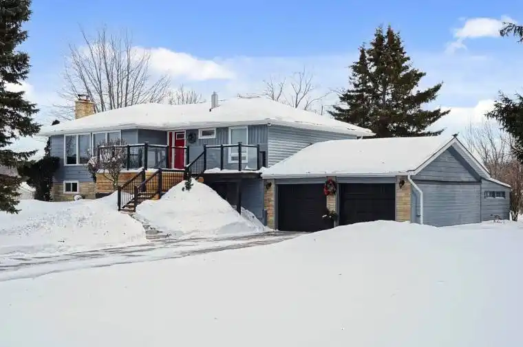 Enjoy pastoral living in an extensively renovated and upgraded home set in the Rice Lake community (see attached upgrades list). See Virtual Tour for 3D walkthrough and read the description: MAIN LEVEL: Three bedrooms and a full bathroom, anchored by an impressive living room featuring a wood-burning fireplace and expansive panoramic windows with stunning views of Rice Lake and the surrounding landscape. Contemporary eat-in kitchen with direct walk-out to the deck, offering scenic views of forests and rolling hills. Front deck with lake views. LOWER LEVEL: Finished at-grade lower level with a separate exterior entrance to the terrace and backyard, providing excellent flexibility for extended family or work-from-home use. Includes a kitchen, laundry area, recreation room with fireplace, bedroom, bathroom, relaxation room, sauna, and direct access to a thermo-insulated garage/workshop.OUTDOOR: Set on approximately 1 acre of lush green space with picturesque pastoral views. Spacious backyard surrounded by mature trees, ideal for outdoor enjoyment, featuring a terrace, BBQ area, in-ground fire pit, storage building, tool shed, and firewood storage. Ample parking at the front on a newly paved asphalt driveway. LAKE ACCESS: Enjoy Rice Lake with approximately 12 ft of waterfront access and a newer dock structure, ideal for boating, fishing, and seasonal lake activities (buyer to verify all uses, licensing, and permits).