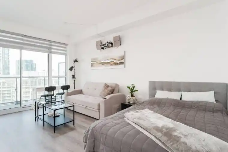 Welcome to The Fortune at Fort York! This Fully Furnished Bright And Spacious Studio is Newly Built with High Ceilings, Floor-to-Ceiling Windows, a Sleek Kitchen Design and Bath, En Suite Laundry and A Charming Balcony. Ideal for a Downtown Executive looking for a turnkey space to Live and Work. Conveniently Located Steps To Loblaws, Farm Boy, Stackt Market and many Restaurants & Bars. Just Minutes To The Waterfront, The Financial District, Union Station, Rogers Centre Bike Paths And Transit Options. Join a Great Community and Building with Amazing Amenities! **EXTRAS** All Furniture, Projector & Screen and Appliances Included. Built-in Fridge/Freezer, Stove, Oven, Microwave/Fan, Dishwasher, Washer/Dryer, All Existing Window Coverings. Underground Parking Spot & Locker Included! Available for short-term lease or one-year term.