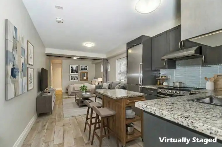 Welcome home! This newly renovated bachelor suite is located in a well-managed multiplex and offers a bright, open-concept layout that maximizes every inch of space. The thoughtfully designed chef-inspired kitchen features stainless steel appliances, a ceramic backsplash, granite countertops, a deep undermount sink, and ample cabinetry-plus space for a cozy dining table. The living area is filled with natural light thanks to a large above-grade window, creating a warm and inviting atmosphere. The sleeping area can be easily separated from the living space with a curtain and includes a generous double closet with custom organizers. Enjoy your beautifully renovated 4-piece bathroom, complete with a large soaker tub and an oversized vanity offering plenty of storage. Coin-operated laundry is conveniently located on the same floor. Outdoor parking is available for $50/month, with the possibility of additional garage parking for an extra fee. Ideally situated in a prime location, you’re just seconds from transit and major highways, and close to excellent schools, parks, restaurants, and grocery stores-everything you need right at your fingertips. No pets. No smoking. Heat and Water Included in Rent, Tenant pays Hydro. A stylish, turnkey space in a fantastic neighbourhood-don’t miss it!