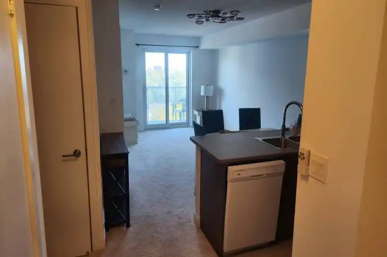 Immaculately maintained 1+1 bedroom unit in the Danforth Village Estates! This bright suite offers open-concept living and a balcony with unobstructed view. The kitchen is equipped with stainless steel fridge, induction oven, microwave and a breakfast bar. The primary bedroom is partially furnished, a good size den is setup for home entertainment with a 70″ Smart TV or can be used as a work area . Enjoy the convenience of in-suite washing machine. Building amenities including an exercise room, party room, bike storage, and paid visitor parking. Close to TTC bus stop, Eglinton GO, schools, parks, trails, and shopping. This unit is partially furnished, please see attached list. Close to Knob Hill Park and outdoor swimming pool, Knob Hill YMCA and Knob Hill Public school.