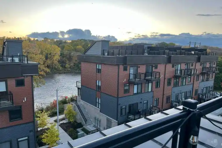 A clean and beautiful townhouse located on the banks of Grand River in Paris, Ontario. It is a two-storey townhouse with a beautiful view from the Rooftop terrace. All utilities are extra.