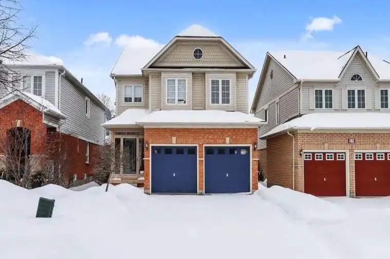 Step into this 1958 sq ft Baywood Homes The Blue Jay model, ideally situated on the largest lot on the street. This home shows true pride of ownership throughout. The main floor offers a bright, open layout with a spacious great room that flows seamlessly into the kitchen and breakfast area, making it ideal for everyday living and entertaining. The kitchen features upgraded counters and backsplash with a convenient walkout to the fully landscaped backyard. Upstairs, you will find four generously sized bedrooms, including a primary retreat with a 4-piece ensuite and jacuzzi tub. A second bedroom includes a practical computer nook, perfect for work or study. Recent updates include new Berber carpet throughout, freshly painted interiors, all new toilets, new faucets in every bathroom, and all new light fixtures. Step outside to your private backyard featuring a salt-water above-ground pool with a new liner (2025) and brand-new solar blanket, perfect for summer enjoyment. Located within walking distance to schools and public transit, close to police and EMS services, and just minutes to shopping and everyday amenities, this home combines space, updates, and convenience in a desirable setting.
