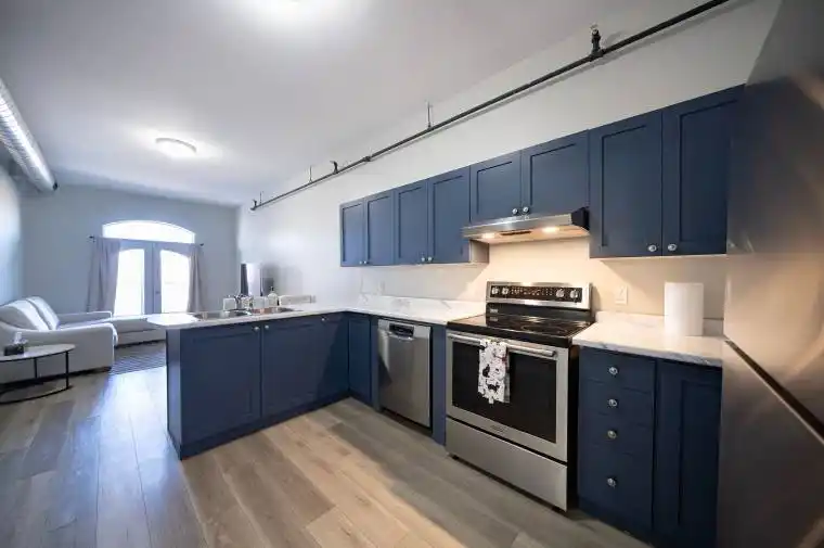 Welcome to 150 Colborne Street, Unit 407 – Downtown Brantford Living at Its Best! Step into style, comfort, and convenience with this fully renovated, loft-style 1-bedroom, 1-bathroom condo, ideally situated in the heart of downtown Brantford, directly overlooking vibrant Harmony Square. Whether you’re a first-time buyer, investor, or student, this stunning unit offers an unbeatable combination of modern living and prime location. Boasting high ceilings, a spacious private balcony, and sophisticated finishes throughout, this unit is designed to impress. The kitchen is a true showstopper, featuring rich navy cabinetry, ample storage and counter space, and stainless steel appliances – perfect for home chefs and entertainers alike. The open-concept layout seamlessly connects the kitchen, dining, and living areas, making entertaining both effortless and elegant. Step through French doors to your oversized balcony, large enough to accommodate outdoor dining or a cozy lounge setup – theperfect space to unwind while enjoying views of Harmony Square and all its seasonal events. The bright and airy bedroom is bathed in natural light thanks to a charming arched window and includes a generous closet. The updated 4-piece bathroom continues the modern aesthetic with stylish finishes and thoughtful design. Additional features include coin-operated laundry facilities conveniently located within the building, eliminating the need for off-site trips. The air conditioner was replaced in 2024. Location is everything – and this property delivers. Just steps from Wilfrid Laurier University’s Brantford campus, the Conestoga College campus, and the new YMCA/Laurier Recreation Complex. With countless restaurants, cafes, shops, and year-round festivals right outside your door, you’ll be at the centre of it all. Amazing opportunity to experience one of Brantford’s most dynamic and walkable neighbourhoods.