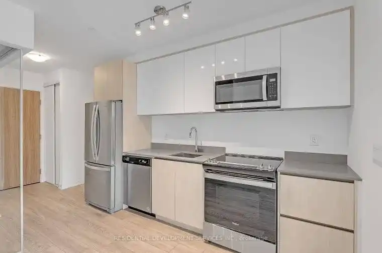 Vacant move in ready unfurnished professionally managed ground-level 671 sqft 2-bedroom 2-bathroom suite in The Keeley: a new development overlooking the lake of Downsview Park and walking distance to Downsview train & subway stations (little as ~20 minutes to downtown)! Parking and locker included. Layout consists of open plan kitchen/living area that walks out to south-facing gated patio, primary bedroom with 3pc ensuite, 4pc ensuite with laundry centre next to 2nd bedroom. Floor plans among listing images and attached to listing. Features and finishes include: laminate flooring throughout, stone countertops, stone backsplash, stainless steel appliances, Blomberg laundry machines, two-finish kitchen cabinets, tiled tub & shower stalls, pot lights, and more! || Appliances: Fridge, electric range, range microwave, dishwasher, washer, dryer. All existing window coverings. All existing light fixtures. || Building Amenities: Refer to listing images to see all! || Utilities: Metered Carma.