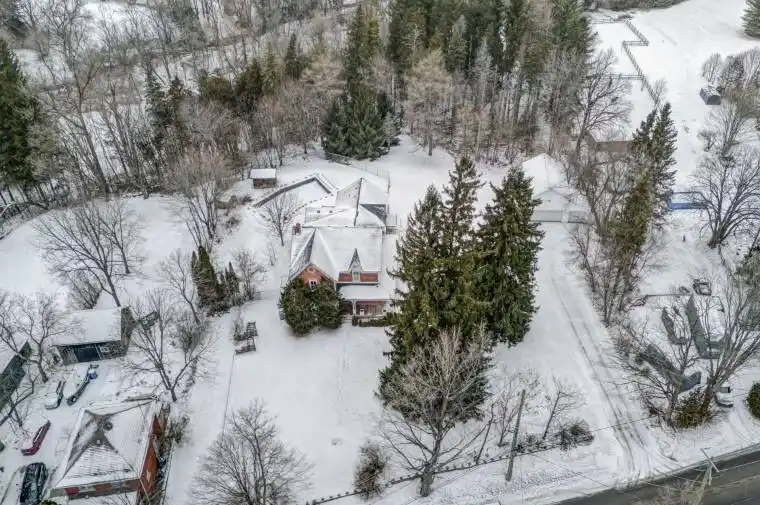 Steeped in history and architectural grandeur, the historic Brunswick Hall is a magnificent 4-bedroom manor offering a lifestyle defined by historic, elegance, and the serene beauty of King Township. Built circa 1875 by Jacob Walton as the founding home of Kettleby, this iconic residence presents a once in a generation opportunity to own and preserve a true piece of Ontario history on over 3 sprawling acres. Life at Brunswick Hall combines pastoral tranquillity with refined country living, where you can host sophisticated garden parties by the inground concrete pool or enjoy open space for horses and outdoor leisure. The grounds feature an original 1842 stone wall, offering a private sanctuary that whispers stories of the 19th century while providing a majestic canvas for modern enjoyment. The home showcases meticulous craftsmanship, featuring double-brick construction, original French doors, and a classic wraparound veranda. Inside, the open-concept country kitchen flows into a west-facing sunroom with breathtaking views of the Kettleby Valley. The functional layout includes a panelled library with built-in bookcases, a dedicated home office, and a grand living room bathed in natural light. The primary suite serves as a private wing, complete with a four-piece ensuite, walk-in closet, and a unique circular staircase leading to the breakfast area. Modern reliability is ensured with updated electrical, heating, and plumbing systems, while original hardwood flooring remains preserved beneath traditional carpeting. The exterior features a three-car bank barn that serves as a triple garage while retaining a third-story loft and capacity for livestock. Located in one of York Region’s most prestigious rural pockets, this premium lot is minutes from King City, Aurora, and Newmarket. Families will appreciate being near top-rated schools, such as The Country Day School and St. Andrew’s College, with easy access to the GO Station and Highway 400.