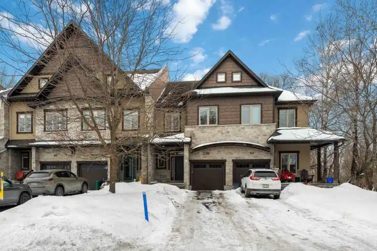 Beautiful 3 bedroom townhouse in the heart of Carp with no rear neighbours and views of the Carp River. Bright main level features a spacious foyer, stylish white kitchen with granite counters, walk-in pantry, stainless appliances, and patio access from the dining area. Sun-filled Great Room includes hardwood flooring and a stacked-stone fireplace. The primary bedroom offers a backyard view, large walk-in closet, and a spa-like ensuite with soaker tub and tiled shower. Two additional bedrooms, a neutral 4-piece bath, and convenient 2nd-floor laundry complete the upper level. Lower level is unfinished with a bath rough-in. Inside garage entry and a private backyard add to the appeal.