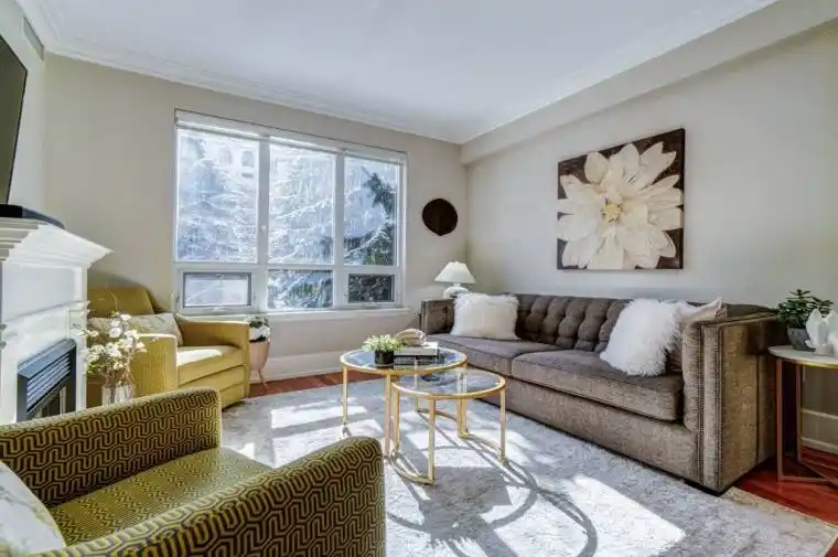 Welcome to an exceptional offering in the iconic St. Gabriel Village by renowned builder Shane Baghai, nestled in the prestigious Bayview Village community. This gorgeous, immaculate 2-bed, 2-bath residence offers 1,090 sf of refined living and represents one of the most attractive entry points into this exclusive, 2-tower enclave. This offering is uniquely positioned for discerning buyers seeking luxury, value and prestige. Thoughtfully designed and arguably the best 2-bedrm layout in the building, the suite features 9′ smooth ceilings, a welcoming gas fireplace, and an ideal split-bedroom plan for privacy. South-facing exposure floods the space with natural light, while the 2nd floor setting offers tranquil, tree-filled views and exceptional privacy. Rich hardwood and marble flooring, solid interior doors, and quality finishes reflect Baghai’s signature craftsmanship. The spacious primary retreat keeps you organized with closet organizers and a linen closet, and a large ensuite with lux features: a large jetted tub, separate shower with rain shower head and body jets, and a Toto Washlet. A modern LG WashTower (June 2025) enhances everyday convenience. The balcony includes a gas BBQ line for effortless outdoor cooking and entertaining. Inspired by French and Italian design principles with contemporary elegance, St. Gabriel Village offers superb management and 5-star hotel-like services: 24/7 concierge & security, valet parking and porter service (prompt deliveries to suites). Residents enjoy resort-style amenities including an indoor pool & hot tub, wet and dry saunas, fitness centre, games room, library, party room, visitor parking, beautifully landscaped gardens and a charming Village Square with a fountain. Steps to Bayview Village Shopping Centre, subway access and minutes to Hwy 401,404/DVP. This is sophisticated living at its finest. (See floor plan included with photos.)