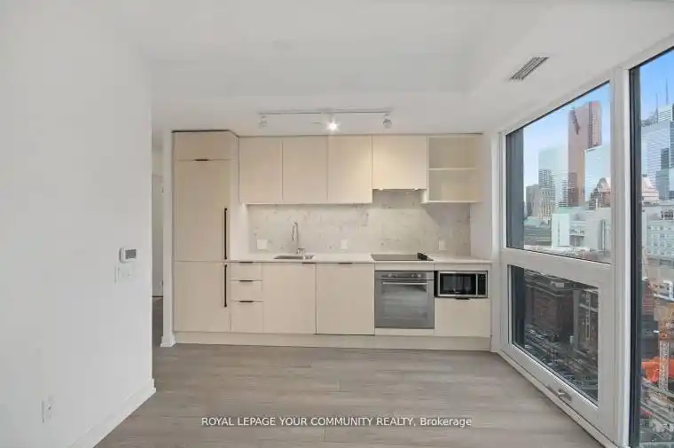Welcome to 199 Church Street! This bright and modern 2-bedroom, 2-bathroom unit features a functional layout with sleek neutral finishes throughout. The kitchen offers stylish cabinetry, a herringbone backsplash, and integrated appliances. Floor-to-ceiling windows provide beautiful city views, including St. Michael’s Cathedral. Conveniently located steps to TMU, University of Toronto, George Brown College, subway and TTC, as well as Eaton Centre and Yonge-Dundas Square. Enjoy 24/7 concierge service and premium building amenities, including a gym and outdoor lounge.