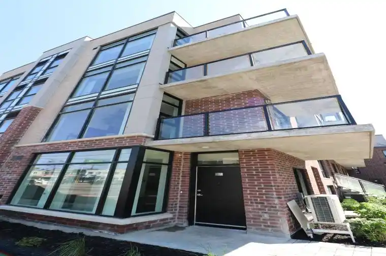 This is your opportunity to live in a stunning brand new 3rd floor studio apartment, ideal as a home/office space, with the option to combine with upper levels for expanded living or work areas. Inspired by the iconic brownstone architecture of New Yorks Greenwich Village, the residences showcase a blend of timeless brickwork with modern black accents. The thoughtful attention to detail in both design and construction sets this space apart, merging the best of contemporary style and classic architectural charm.Neutral Decor, Mirrored Closet Doors, Large Floor To Ceiling Windows Lots of Natural Light, Private West Facing Balcony, Efficiency at its Finest. Shared Roof Top Terrace For Outdoor Enjoyment ! **EXTRAS** Could also be FURNISHED AT ADDITIONAL COST