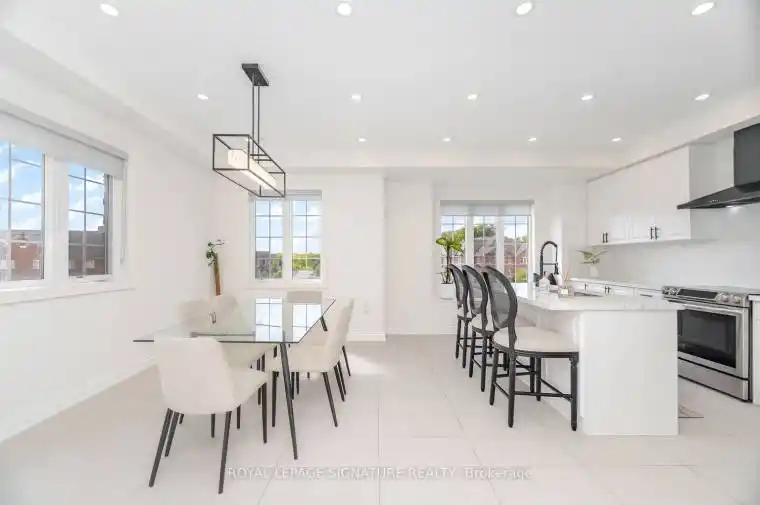 Sun filled end unit freehold townhouse spans 3 storeys, offering 10ft ceiling height, 3,464 sqft. of living space (including 850 sqft. in the lower level) with abundant natural light throughout versatile layout, 2 large living rooms, 4 bedrooms, 4 bathrooms, ideal for a growing family. Two private entrances on a quiet cul-de-sac. Parking for 3 cars. The Main floor is flexible office/family room with adjacent powder room and a large custom laundry area. The Second floor has well appointed kitchen with upgraded quartz counters, walk-in large pantry with modern shelving, open living/dining/family areas, and powder room, great for gatherings. The Third floor has four spacious bedrooms designer fixtures/vanity, plus a private balcony. With excellent assigned and local public schools (Waterdown DHS, Allan A Greenleaf ES, É Élém Renaissance,ÉS Georges-P-Vanier) .This home is located in park heaven, with 4 parks and a long list of recreation facilities, Conveniently located minutes from Aldershot GO.