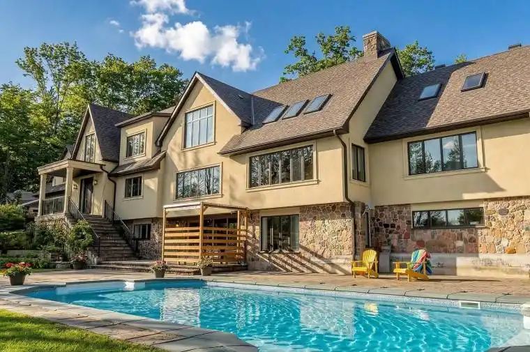 Perched atop a breathtaking hilltop and surrounded by 25 acres of pristine woodland, this spectacularly reimagined estate offers a rare blend of refined luxury and unspoiled natural beauty. Backing onto the protected landscapes of Joker Hill and framed by the crystal-clear waters of Keele Creek, the property presents an extraordinary retreat where privacy, elegance, and outdoor adventure converge.A long winding tree-lined drive sets the stage for a grand arrival at this remarkable residence, offering 7,229 sq. ft. of total living space (as per newly measured floor plan). Here, every season brings new experiences-from hiking and ATV trails through your own forest to vibrant poolside gatherings and tranquil evenings immersed in nature.Through the grand entrance, step into an airy open-concept interior highlighted by a dramatic 23-foot vaulted ceiling, a striking floor-to-ceiling fireplace, a stunning four-season glass solarium, and sweeping panoramic views framed by expansive windows throughout.The main-floor primary bedroom offers a private upper-level retreat. Step up to the 2nd floor, 3 bedrooms with their own ensuite bathrooms and 1 without provide privacy to each family member. An Exercise studio with mirrored wall.The fully finished walk-out lower level is bathed in natural light and presents a versatile living space with a spacious dining area and a kitchen ideal for extended family entertaining. The custom gourmet kitchen serves as a true showpiece, anchored by a grand centre island, complete with both gas and electric stove, stone countertops, tiled backsplash, bespoke cabinetry, and built-in stainless steel appliances.Large windows and walkout access from the kitchen and dining area lead to the outdoor oasis-a 20 x 40 inground pool surrounded by professionally landscaped grounds and manicured woodland trails. The setting offers the perfect transition from lively family gatherings to quiet moments of reflection in nature. Edited photos for illustration only.