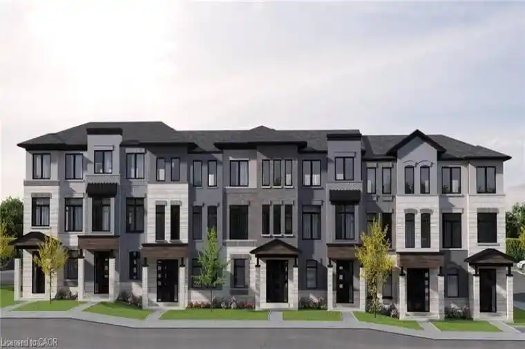 Welcome Home to this bright & beautiful Modern Executive 3 story Townhouse in Hespeler Cambridge. This luxurious home is tastefully upgraded featuring 3 Bedrooms + Den (ideal for an office space or a 4th bedroom) , 4 Washrooms, high ceiling, open concept contemporary layout, large balcony & parking space for 2 cars. The home features entrance from the front & rear side. The main floor offers a Den which can be put to multiple uses such as home office, entertainment room, family room, Den, Bedroom, ect. It also offers powder room with upgraded vanity with stone counter. The main floor offers extra storage space, closets, and access to the attached garage. The 2nd floor features a beautiful open concept layout with a big living room, upgraded kitchen with oversized breakfast island & pantry (upgrades include; tall cabinets, oversized island, solid countertop, modern backsplash, Stainless Steel Chimney, Stainless Steel Samsung Appliances including Gas Stove), dining area, walkout to beautiful balcony, second powder room & high ceiling. The 3rd floor offers Primary bedroom with upgraded En-suite (double vanity with solid countertop, standing shower with glass enclosure) & a big walk-in closest along with 2 other decent sized bedrooms & laundry. Thousands of $$ spent on tasteful upgrades for the tenant to enjoy and take pride in living (stair walls converted to railings for openness, all door & cabinet knobs & handles, kitchen & bathroom countertops, ensuite with standing shower & glass door, zebra blinds, auto garage door opener, water softener, to list few). The Common Element fees that the owner will pay includes snow removal & grass cutting of the common areas. Additionally, the following are included in the rent; High Efficiency Furnace, HRV, Air Conditioner, Tankless Hot Water Heater, Water Softener, Air Purifier & Smart Thermostat, Auto Garage Opener. Prime Location close to all amenities, schools, parks, trails, pond, shopping, restaurants, Expressway & HWY 401!