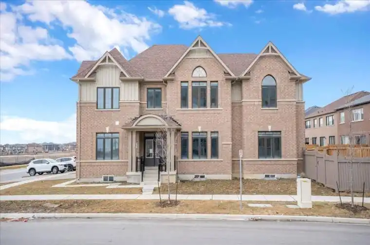 Over 3100 sqft detached 5-bedroom home on a corner lot with tons of natural light and an open-concept layout, 4 years new, the sought-after “Cypress Model” in prestigious Caledon Hills. This stunning property offers 5 bedrooms and 5 bathrooms on a premium 42 ft corner lot directly across from the park, featuring 9 ft ceilings and rich hardwood flooring on both main and upper levels. The upgraded kitchen includes quartz countertops, a large undermount sink, extended upper cabinetry, pantry, soft-close doors and drawers, pot drawers, and a gas line for the stove, with matching quartz in the powder room and primary ensuite. Main floor den/office…..Additional highlights include oak stairs with iron pickets, gas line for BBQ in the garage, separate side entrance to the basement, larger basement windows with egress, rough-in for a 3-piece bathroom, and many more thoughtful upgrades throughout. Upper level offers 3 private ensuites plus a Jack-and-Jill, giving all 5 bedrooms direct bathroom access. Basement features rough-in bath and enlarged egress windows-ready for your personal touch. A true showpiece in an exceptional community. sold in “As is” basis
