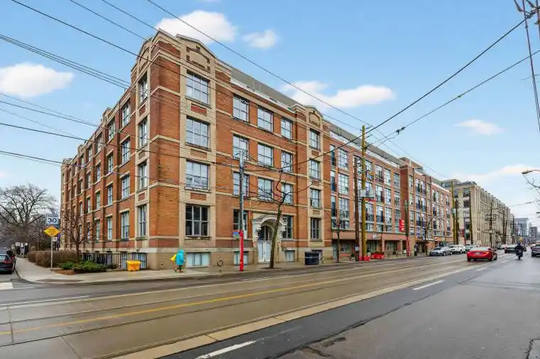 A Rare Opportunity to Own a True Hard Loft in the Iconic Chocolate Company Lofts by Plazacorp. Originally Built in 1912 as the Patterson Candy Company Factory and Converted in 2005, This Landmark Building Blends Authentic Industrial Character With Modern Urban Living. Suite 214 is a Highly Sought-after 2 Bedroom, 1 Bathroom Corner Unit, Post & Beam Loft Living. Unlike the More Common Soft Lofts in the Building, This True Hard Loft Features Soaring Ceilings, Exposed Brick, Timber Beams, and Industrial Ductwork Hallmarks of Genuine Loft Design. Expansive North and East Facing Windows Wrap the Suite, Filling the Space With Natural Light and Offering Views Toward Trinity Bellwoods Park. The Open Concept Layout is Ideal for Both Everyday Living and Entertaining, Complemented by an Updated Kitchen With Granite Countertops and Stainless Steel Appliances. Spacious Bedrooms Provide Flexibility for End Users or Investors Alike. This Boutique, Tightly Held Building Offers 24 Hour Concierge, Fitness Centre, Party Room With Terrace, and Underground Parking. Located Directly Across From Trinity Bellwoods Park and in the Heart of Queen West, Steps to Top Restaurants, Cafes, Shops, and Nightlife. Includes One Underground Parking Space and One Locker. A Rare Offering in a Building Where Units Seldom Come to Market.