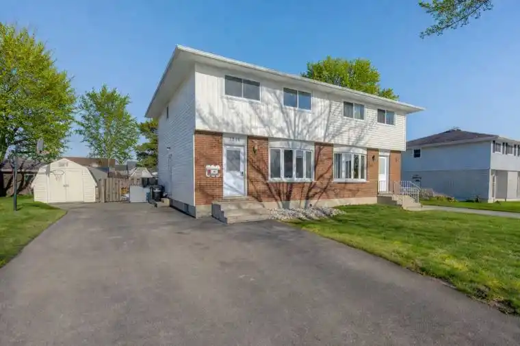 Welcome to this beautifully maintained semi-detached home in the heart of New Hamburg, perfectly suited for first-time buyers or simply those looking for an affordable move-in-ready property. This home has been completely updated and freshly painted throughout, featuring updated flooring and carpet-free! The bright kitchen with dinette offers a walkout to a fully fenced backyard and deck, creating a great space for entertaining or relaxing outdoors. A community park directly across the street adds to the family-friendly appeal. Upstairs offers three generous bedrooms and a nicely updated 4-piece bathroom with granite countertop. The fully finished lower level has a separate side entrance which leads to the large recroom and second bathroom, providing additional functional living space as well as possible in-law potential. Major mechanical updates include furnace and central air in 2017 and roof in 2021. The driveway was widened and redone in 2020, offering enough parking for everyone! With all levels finished and extensive updates completed, this home truly has nothing left to do but move in and enjoy!