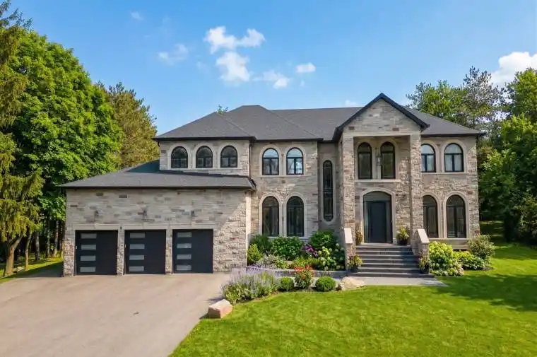 Welcome to a Marvel of Modern Construction. Recently Completed on a 2.4-acre Gated Estate in Prestigious King Offering over 7,500 Sq ft of refined luxury living (5800 SQ.FT+2950 SQFT). A long, tree-lined approach unveils a residence defined by natural stone and brick masonry, balanced proportions, and striking architectural presence. Soaring two-storey 20-ft ceilings crown the grand great room, creating a dramatic yet elegant setting for entertaining. The chef’s kitchen anchors the home with a quartzite island, premium built-in appliances, dual cooktops and ovens, and an oversized walk-in pantry. Each bedroom features a private en-suite, including a main-floor suite, designed for seamless multi-generational living. The upper primary retreat offers a spa-inspired en-suite and bespoke dressing room. The finished lower level, with 12-ft ceilings and golf simulator rough-in, adds exceptional lifestyle flexibility. Notable upgrades include dual HVAC systems, radiant floor heating, spray foam insulation, and a tankless water system. A 3-car garage, heated 30×30 workshop, and expansive two-tier deck complete the estate. Minutes to Hwy 400, top private schools, and amenities-an enduring legacy property defined by craftsmanship, privacy, and location.